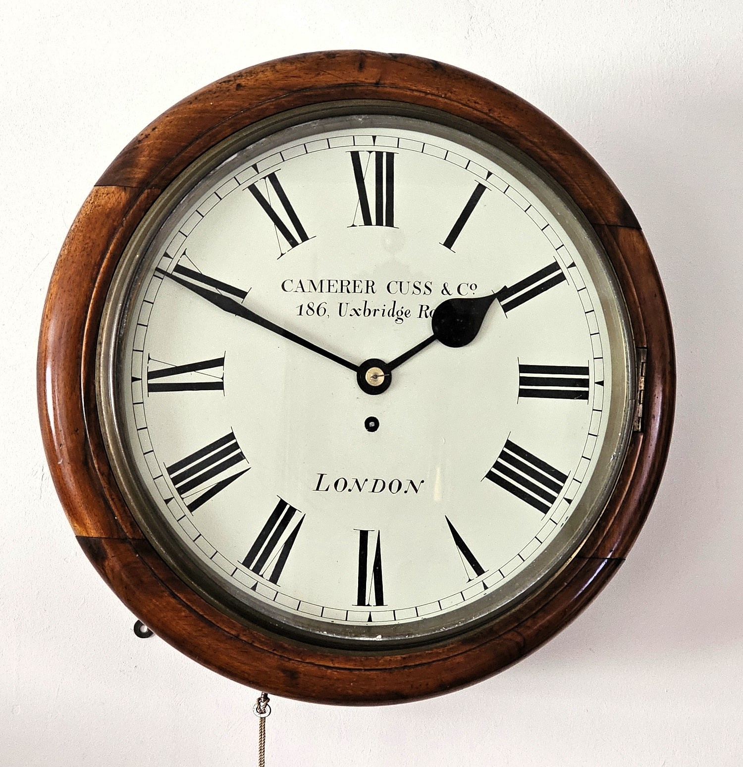 14" painted dial, original hands, signed Camerer Cuss & Co, 186 Uxbridge Road, London