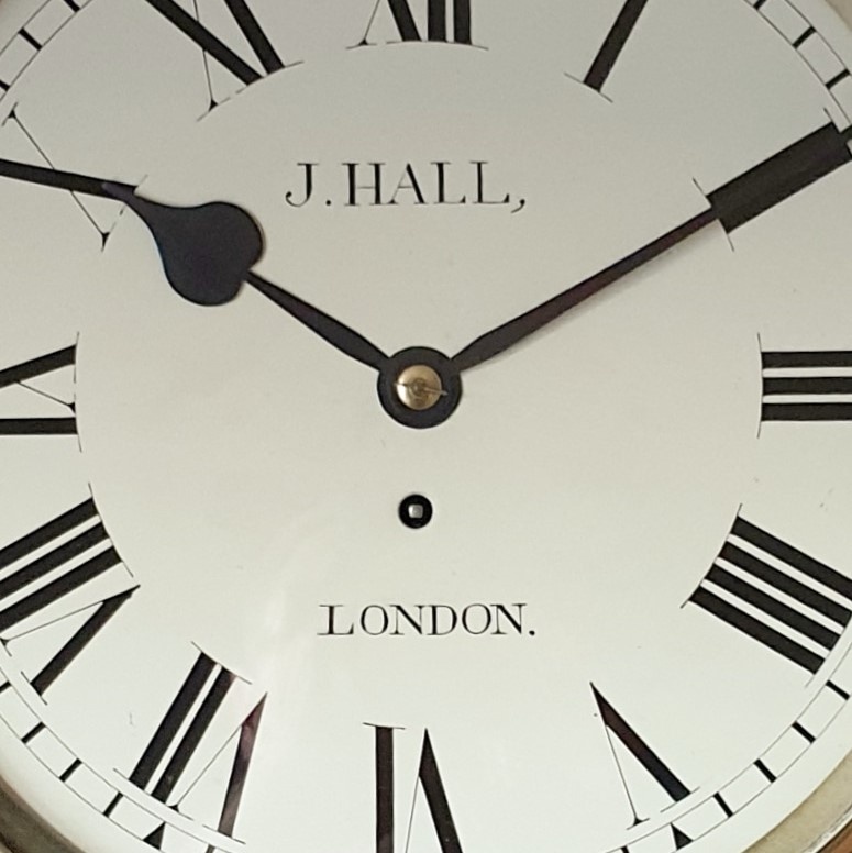 11" painted dial, original hands, signed J. Hall, London